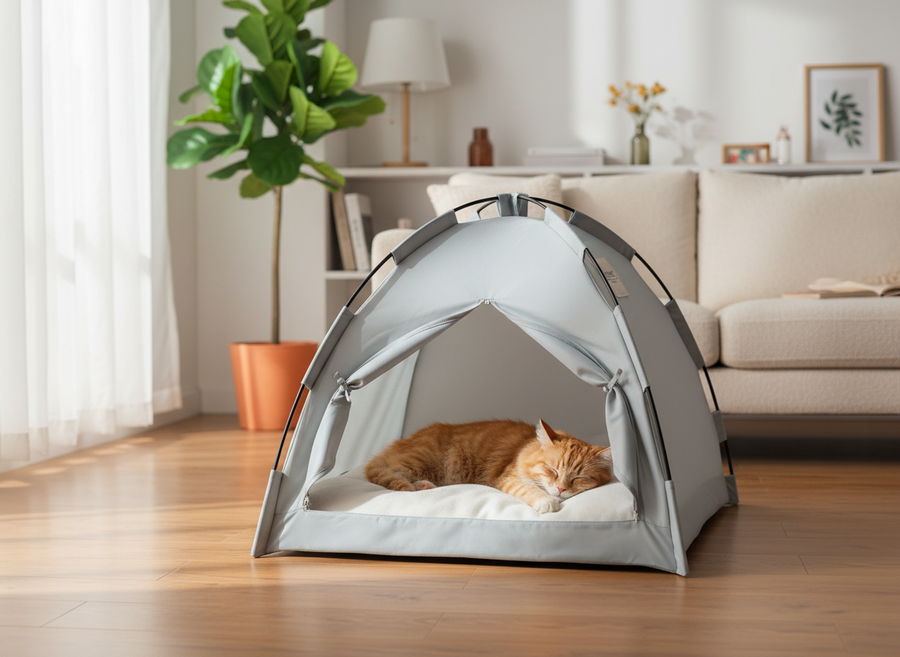Ein gemütliches Zuhause für deinen Liebling zu jeder Jahreszeit. Das temperaturregulierende Haustierzelt bietet deinem Vierbeiner einen besonders behaglichen Rückzugsort. Das superweiche Material spendet an kühlen Tagen Wärme, während die doppelseitige Liegefläche im Sommer angenehm kühl bleibt. Dank seines geringen Gewichts ist unser Temperaturregulierendes Haustierzelt zudem ideal für Reisen, Camping oder Ausflüge, sodass sich dein Vierbeiner überall wie zu Hause fühlt.